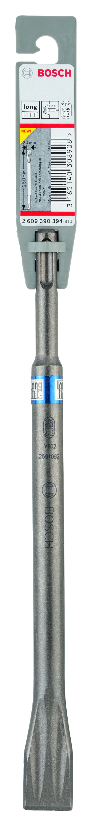 SDS plus-flatmeiselen gir mindre fastkjøring og mer fremgang i betong enn standard flatmeisler. De selvkvessende ribbene lager ikke bare horisontale, men også vertikale sprekker i materialet. Dette gir høyere materialfjerningshastighet og hindrer at meiselen setter seg fast. I tillegg gir hoggtennene på meiselkanten økt arbeidsfremgang. Meiselen er beregnet på bruk i betong og murstein til å fullføre justeringsarbeid for å ødelegge eller fjerne vegger, renovere fuger og fjerne armeringer. Den er kompatibel med et SDS plus-meiseltilbehør, eller den kan brukes direkte i SDS plus-hammere med en rotasjonsstopp. SDS plus-flatmeiselen gir 30 % lengre levetid og 15 % høyere materialfjerningshastighet enn standard meisler. Samlet lengde mm 250 Meiselskjær mm 20