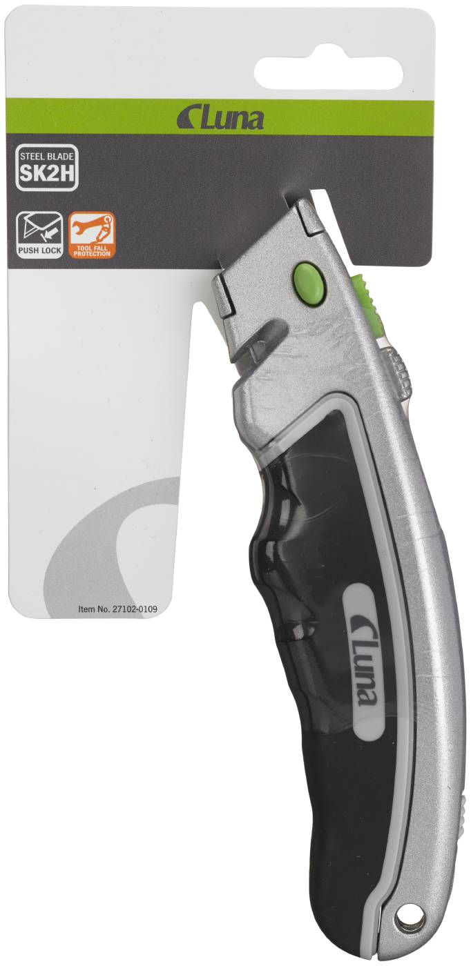 Universalkniv, lett klassisk modell. Hus av aluminiumlegering med gummidetaljer for komfortabel bruk. Spor for rask kapping av bånd/snøre. Bladmagasin i håndtaket. Leveres med SK2H blad. Hull for verktøysikring.